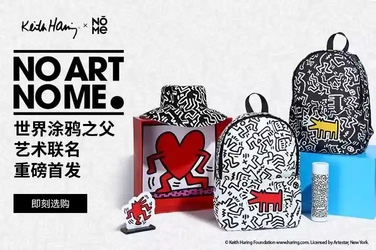 日前,KeithHaring×NOME艺术联名系列全球限量首发。KeithHaring是上世纪80年代最具代表性的街头艺术先驱,他一直以鲜明直接的画作传达和平与爱的理念,他的涂鸦作品如今已经成为流行文化的一部分,在我们日常生活中随处可见。ADIDAS、COACH、BAPE等多个品牌都曾与之合作发布联名。