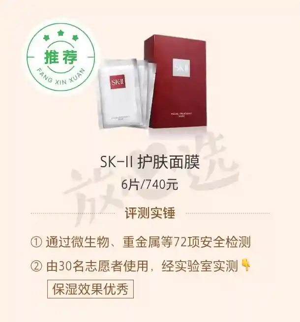 去年检测含可迁移性荧光增白剂,随着面膜新标准的执行,SK-II也做了修改,经检测不再含有可迁移性荧光增白剂。