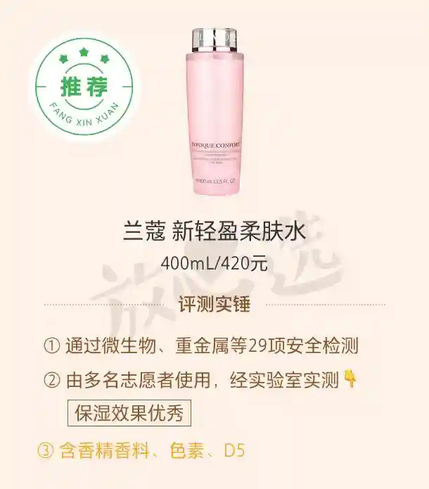 大名鼎鼎的兰蔻粉水,火了这么多年,也算对得起名声~安全过关,补水效果优秀,不过敏感肌的小伙伴要慎选哦!