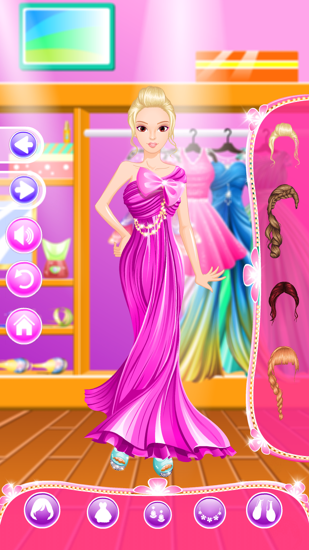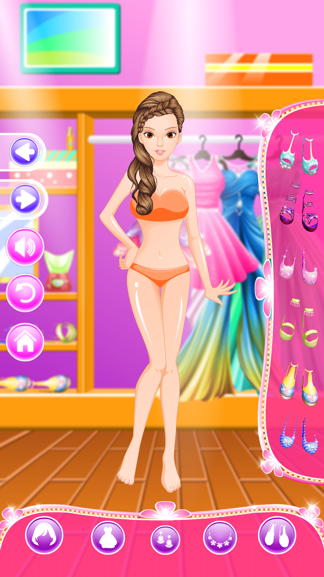 《公主化妆》作为一款休闲类的换装小游戏在画面上并没有感觉出太大的亮点,游戏的画面也只有化妆间一个场景,非常容易产生审美疲劳,而游戏中角色的衣服也并不是很全面,而且关于人物的等比也存在问题,看上去很不美观。