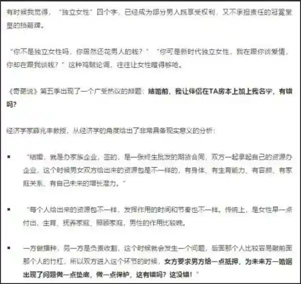 那些觉得女性谈钱就是势利、拜金的人,真想诚恳问一句,你们家是有矿吗?醒醒吧,现在有几个女人是图你半套房和工资卡才跟你结婚的?