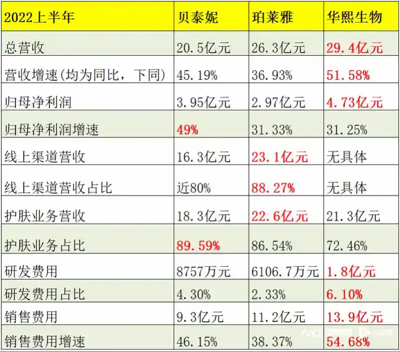 相比之下,同样以护肤业务为主要板块,华熙生物在护品品类拓展的品牌更加多元。2022年上半年华熙生物实现总营收29.35亿元,同比增长51.58%;实现归属于上市公司股东的净利润4.73亿元,同比增幅31.25%。