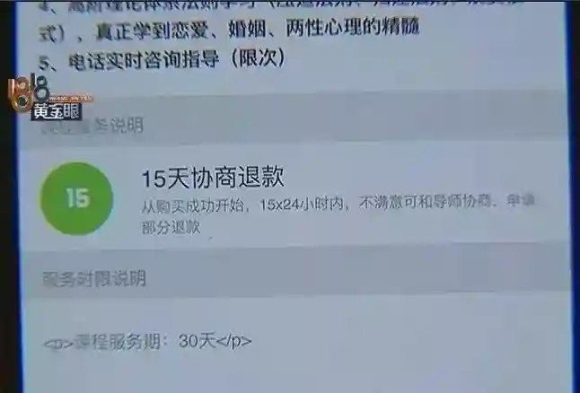 再拨打“小鹿情感”客户服务中心的400热线,客服人员表示,订单页面上已经注明“15天协商退款”,既然超过了时限,6000块钱肯定不能退。目前小朱已经向北京市工商行政管理局投诉。