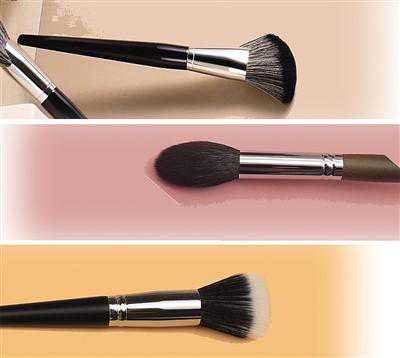 ▶散粉刷:散粉刷是定妆的好帮手,普遍为舌形或灯泡形。挑选散粉刷时,一是刷头要大,方便快速轻扫整个面部;二是质地要蓬松,缝隙较大的刷毛取粉更均匀,也能带给人清风拂面的柔软之感。