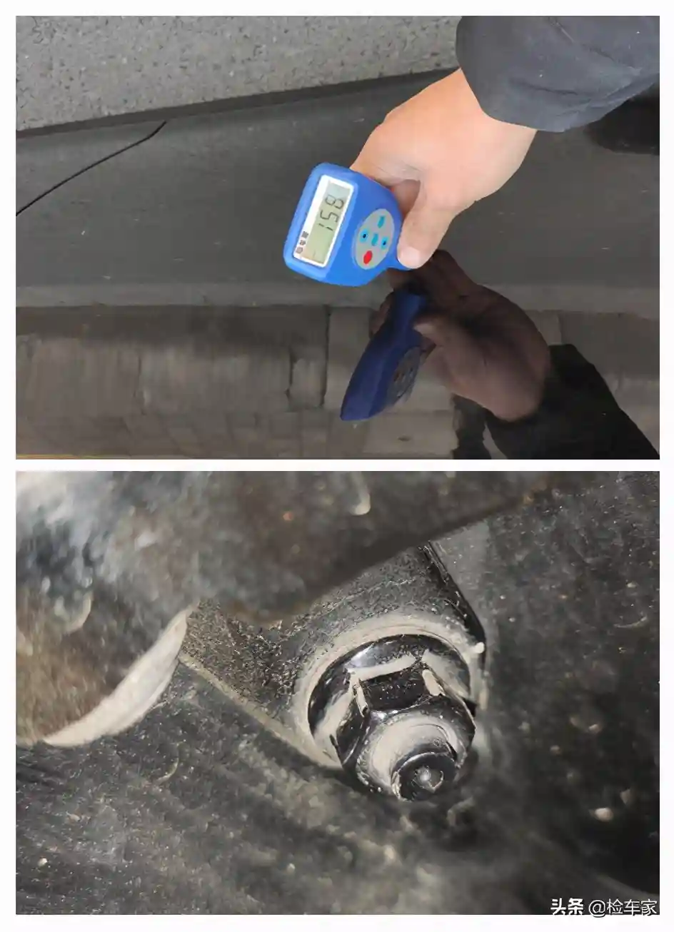 然后查验了右前门固定螺丝,以及右前叶子板内侧固定螺丝,都是正常的,也就是说虽有损伤修复但都还是原厂的,没有更换。