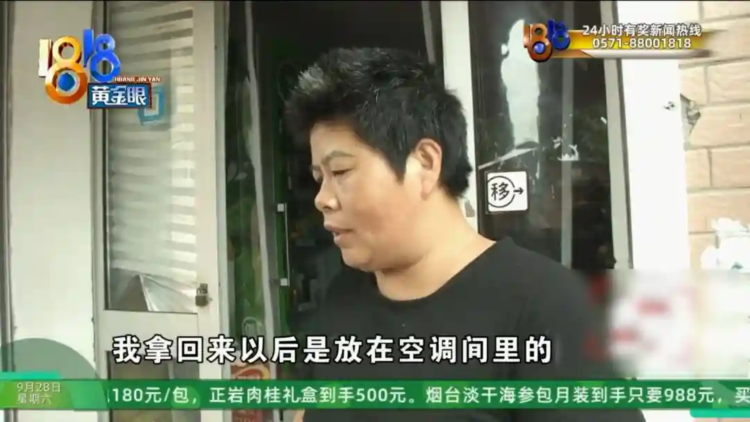 杭州富阳淑镁超市老板娘张女士:我拿回来以后是放在空调间里的。