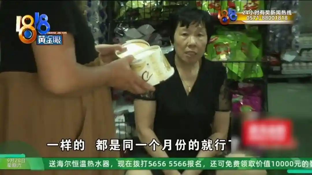 杭州富阳淑镁超市老板娘张女士:在这里,日期都是好的,我们9月1号进的,日期都是好的,7月16号生产。