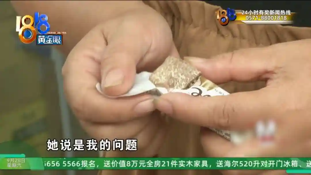 王老板的妻子:如果跟这个老板娘全部同一个批次,都是七月份,因为其他人,如果我一箱全部有问题,那其他人,不是光她一个人说我有问题。