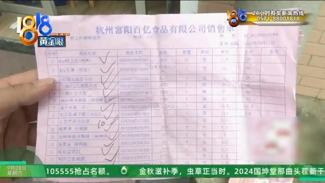 杭州富阳淑镁超市老板娘张女士:对,我是9月1号拿的货。