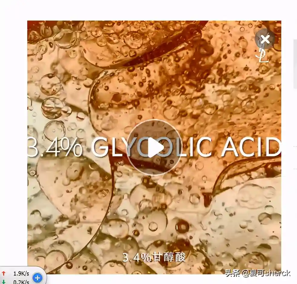 官方有说了羟基乙酸是3.4%,大家可以自己看下。然后跟兰蔻激光水类似,但是我个人猜测夜皇后精华应该更“酸”点,种类比较多,包括AHA羟基乙酸,乳酸,少量水杨酸,以及欧莱雅加速角质代谢和促进吸收的羟乙基哌嗪乙磺酸生物缓冲剂。这个部分是他的核心。