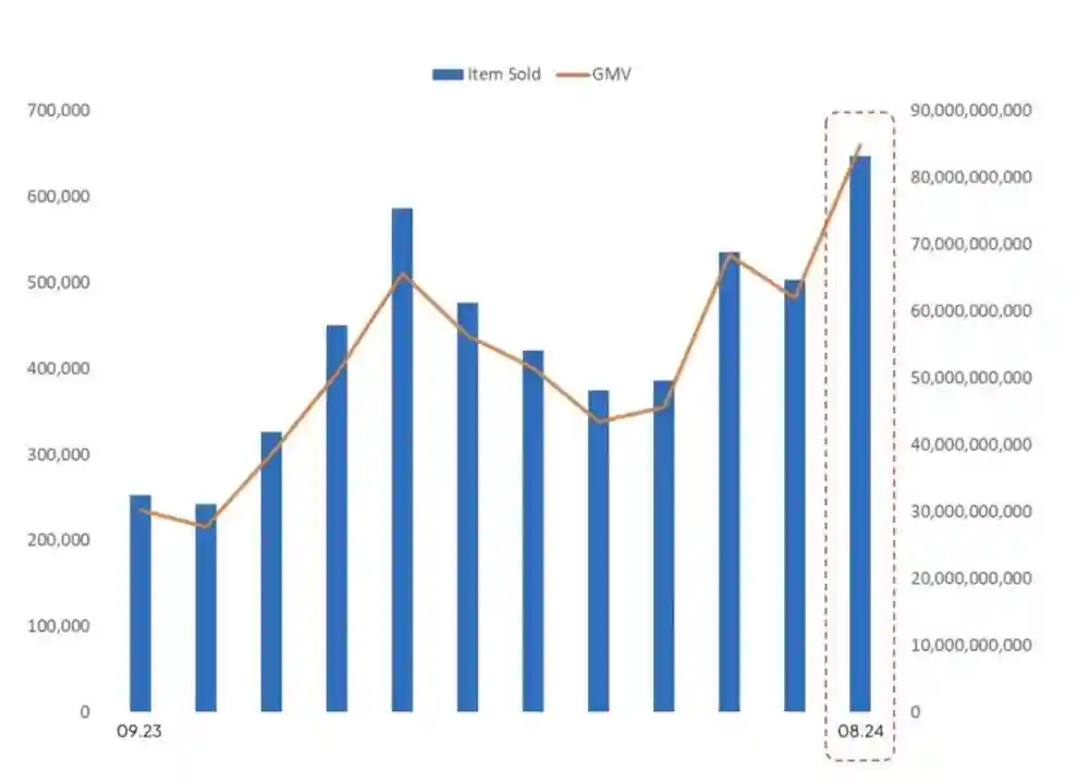 Metric此前发布的一份报告显示,从2023年1月到2024年8月,越南Shopee、Lazada和Tiki3个电商平台来自中国化妆品的总收入达到10050亿越南盾。其中,2023年1月,市场收入略高于300亿越南盾,到2024年1月,销售额将到近千亿。
