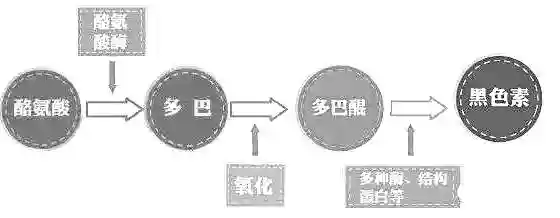 我们都知道,皮肤颜色主要由皮肤中黑色素含量决定的,当我们的皮肤受到紫外线照射刺激时,黑色素细胞就会生产黑色素来进行肌肤自我保护。这个过程中会产生大量酪氨酸酶,酪氨酸与其结合,再经过一系列复杂的反应后会转化形成黑色素