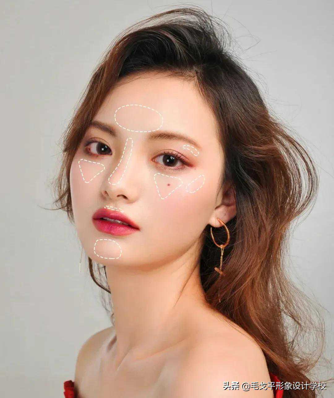 ★高光:高光液or高光粉or高光棒,亦可用同色眼影代替,在额头、鼻梁、眼下三角区、唇峰、下巴进行修饰