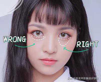 此外,还要提醒大家一点:遮黑眼圈时要离眼球一小段,空出卧蚕的位置,否则会显眼睛小哦~