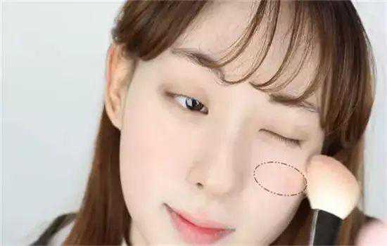 第五步:在两颊上刷上橘色腮红,腮红的位置可以靠中间一些,这样显得更加俏皮可爱。