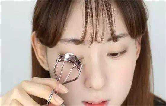 第六步:用睫毛夹将睫毛夹卷曲,纤长卷翘的睫毛会显得清纯。