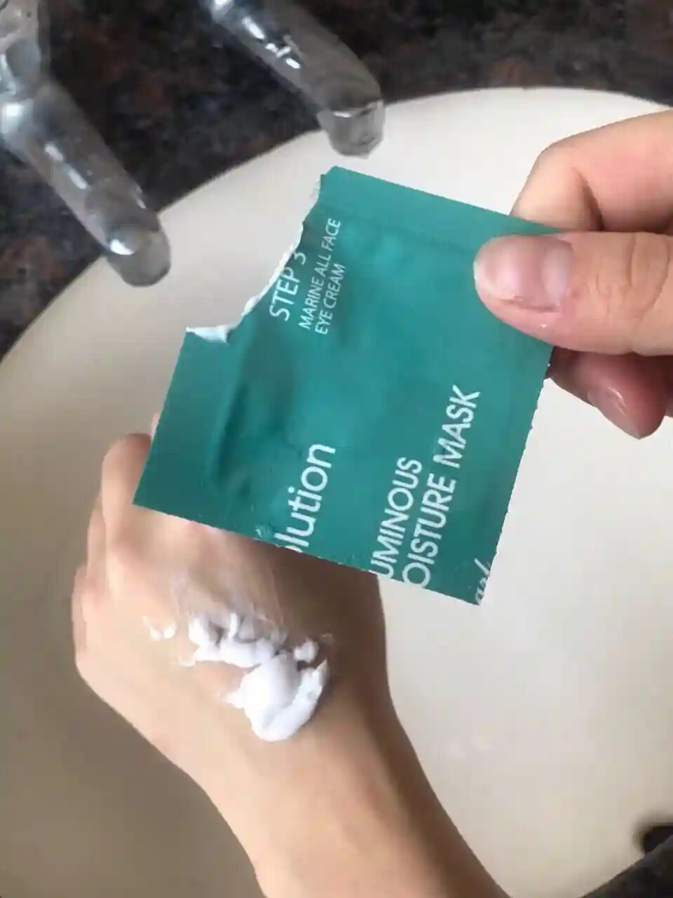 Step3:用清水冲洗脸部,涂抹眼霜(还可当面霜涂全脸)