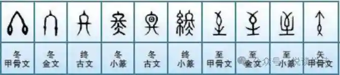 在世界上汉字很特别,创立时就讲究“形、音、义”兼顾。若从汉字字形和词源上说,“冬”和“终”关系密切。在甲骨文和金文中,字形上的“冬”和“终”本是一个字。就像绳子的两个顶端各打一个结,表示事情完结。词义上,按东汉许慎《说文解字》解释曰:“冬,四时尽也”。刘熙《释名》曰:“冬,终也,物终成也”。古人认为:一年四季以万物生长的春天开始,以草木凋零的“冬”终结于四季。故此,“冬”和“终”字同源。许慎曾收录“冬”和“终”二字,并各附小篆和古文形体。“终”之古文,上承甲骨文和金文,将两端的绳结连成一道横线。小篆“冬”字,在古文“终”下增加义符“仌”(bīnɡ)。小篆“终”字,又在小篆“冬”旁增加义符“糸”。至此,“冬”和“终”在隶楷阶段完成分化。