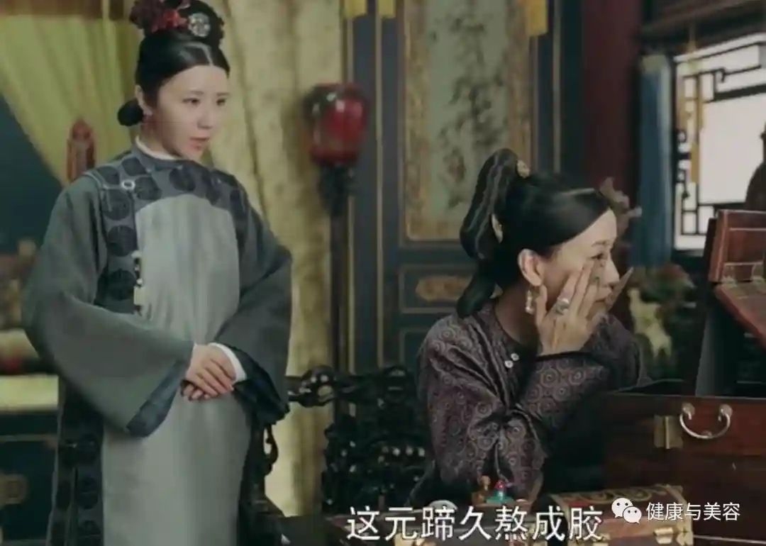 为了抗老,每晚用猪蹄熬成胶,涂抹在脸上。