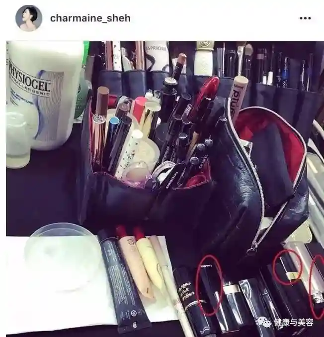 佘诗曼私下里是一位美妆达人,看看她晒出的化妆包~~