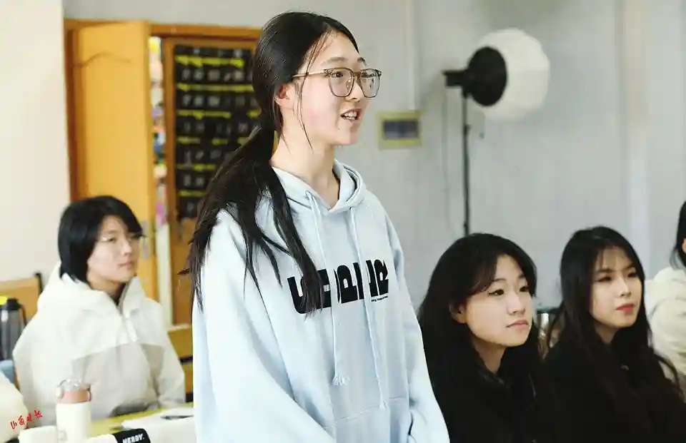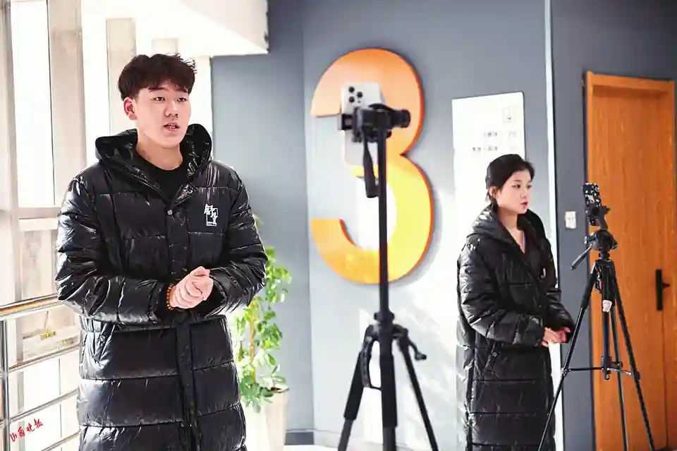 在太原广播电视台的教室里,灯光柔和地洒落在课桌上。张佳鑫是太原市第十九中学学生,高一听过一次讲座后,毅然从美术艺考生变成播音主持艺考生。眼瞅着联考日益临近,张佳鑫不断给自己增加任务量。每天骑车去学校的路上,他都会练习一些口部的基本功,中午抽出半小时时间练习朗诵,晚上半小时练习即兴评述。艺考前夕,他还要去参加一次集训。张佳鑫无奈地说:“这次考试给我的压力挺大的,上周刚进行了即兴评述的专项模考,我对自己的表现不是特别满意。播音主持专业对形象的要求挺高,我的脸比较圆,感觉形象分可能会低一些,所以减肥也成了我近期的目标任务。”