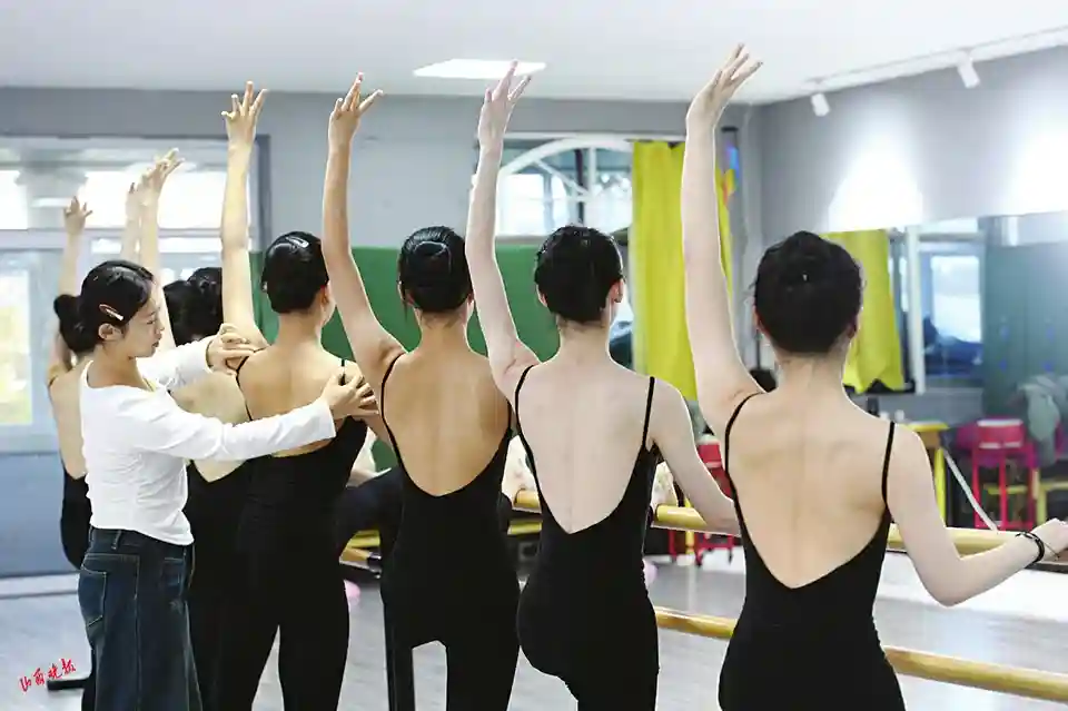 清晨6:30,整座城市尚未完全苏醒过来,太原市舒曼艺术学校内却已灯火通明。舞蹈教室里,考生身着练功服,对着镜子一遍又一遍地精心打磨着每一个舞蹈动作。一名备考民族舞的考生说:“每一个手势、每一次旋转都至关重要,真希望自己能在艺考的时候完美地呈现出来。”