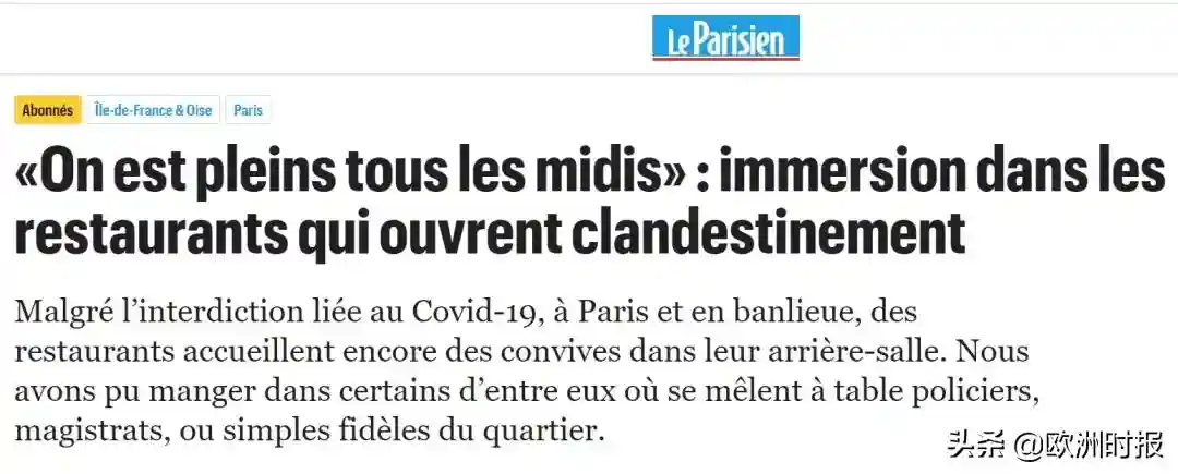 ▲餐馆违规开门,监管机构知不知情?法国餐饮及酒店业协会(UMIH)负责人HubertJan表示:“不知道,没听说。有也是极少数。”而另一边,巴黎警方则表示:“没收到有关这个问题的任何指令。警察局也没有安排任何人手对餐馆违规营业进行巡逻检查。”(网络配图)