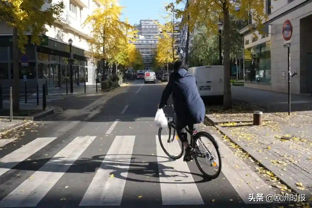 ▲图为巴黎一家中餐店老板正骑着自行车,为顾客送餐。据这位老板透露,他曾为送一份外卖,单程骑行8公里。(记者马行健摄)
