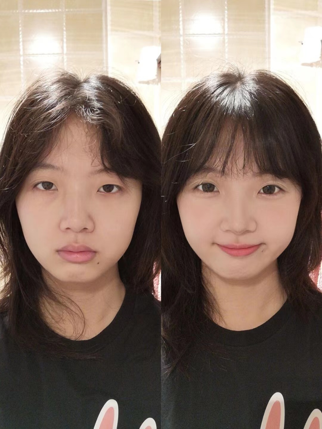 同样的一个淡妆,涂口红和不涂口红,整个人的精气神都完全不一样,一扫颓废丧气的感觉,化身元气满满的少女~
