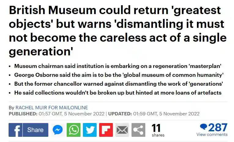 作为世界四大博物馆之一的大英博物馆,拥有珍贵文物藏品达800多万件,其规模之庞大令世人震撼。但却绕不开一个问题:其中出自英国本土的文物并不多,绝大部分是从世界各地掠夺来的“战利品”。
