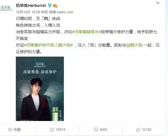 10月15日,据北京商报报道,佰草集产品已陆续退出屈臣氏,恰巧的是,前一天(10月14日),佰草集官方微博宣布男星魏大勋成为品牌护肤代言人。