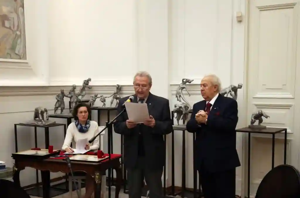 2019年5月,意大利艺术研究院院长阿琦蒂尼(CristinaAcidini)女士与中国美术馆馆长、意大利艺术研究院荣誉院士吴为山先生共同为吴为山雕塑作品《超越时空的对话——达芬奇与齐白石》揭幕