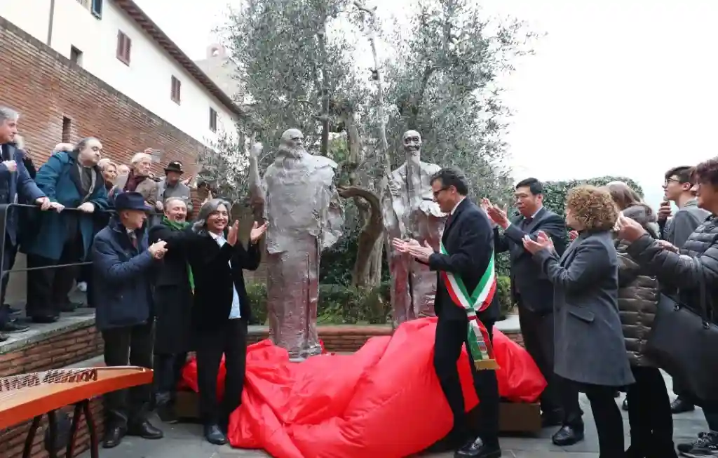 在中意两国重要嘉宾的见证下,吴为山雕塑《超越时空的对话——达·芬奇与齐白石》在意大利芬奇市隆重“落户”,永立莱昂纳多·达·芬奇博物馆和图书馆