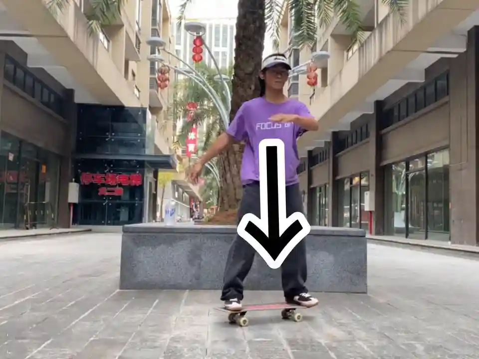 ·重心放在两腿正中间,先内转肩膀90度,再发力转板尾。