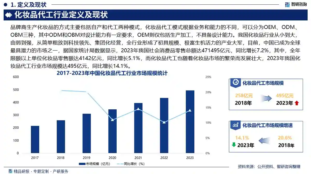 智研咨询专家团队倾力打造的《2025-2031年中国化妆品代工行业市场分析研究及未来前景研判报告》(以下简称《报告》)正式揭晓,自2021年出版以来,已连续畅销4年,成功成为企业了解和开拓市场,制定战略方向的得力参考资料。报告从国家经济与产业发展的宏观战略视角出发,深入剖析了化妆品代工行业未来的市场动向,精准挖掘了行业的发展潜力,并对化妆品代工行业的未来前景进行研判。