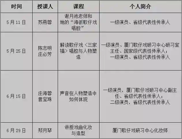 非遗大课堂——歌仔戏系列课程一览: