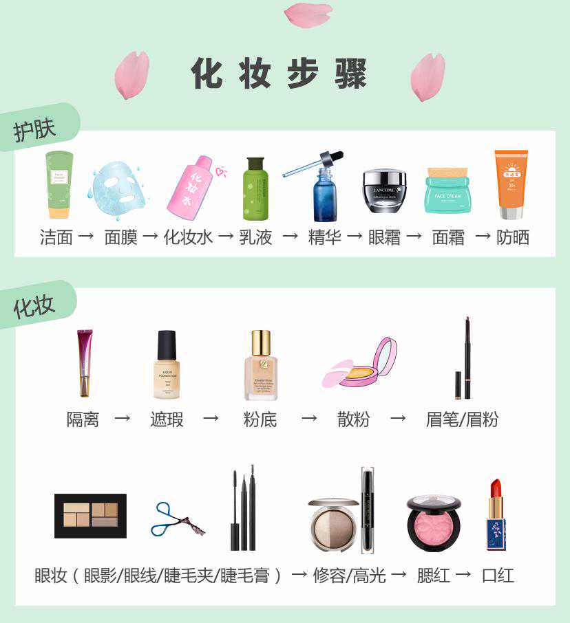 下面是常规的化妆流程(新人可以酌情删减化妆步骤哦):