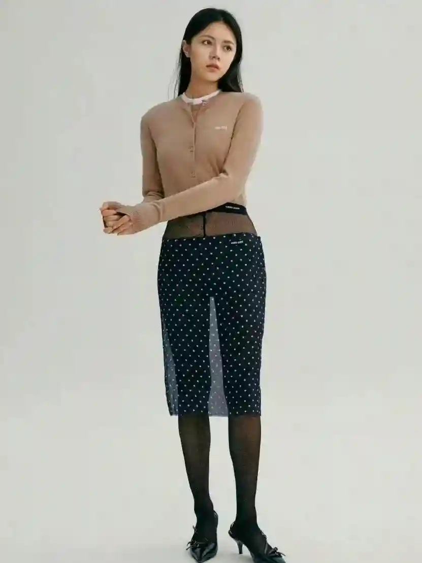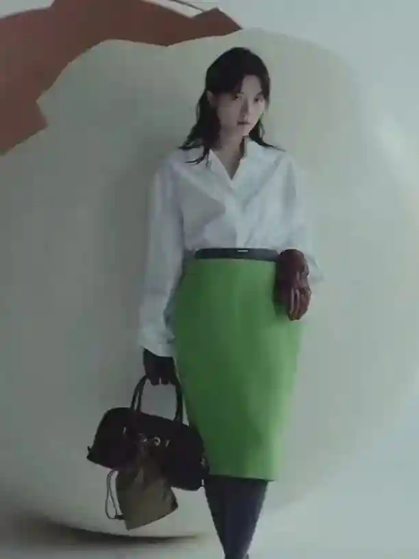 发型上建议选择扎发而不是披发,减轻头部视觉占比;服装选取上可以选择收腰长裙,增加下半身量感同时拉长比例。