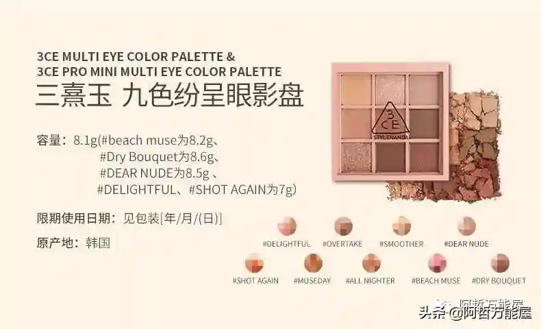 为什么你的面具在你的眼睛里闪闪发光?如果你不能得到哈兹兰的眼睛,至少你一定与众不同。在这一点上,今天的主角即将登场,它是3CE九色眼影调色板,帮你轻松制作面膜化妆。图像源网络3CE九彩色眼影调色板的成本约为200英镑,这是可以接受的办公室工作人员,但可能有点昂贵的学生聚会。