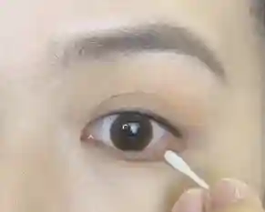 接下来就是利用刷子蘸取浅色遮瑕膏,刷在下眼皮边缘,增加下眼睑的眼白面积,不需要买白色眼线笔,也能有一样的效果哦~