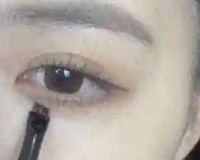 用眼线胶笔在眼睑下方距离2mm的位置画下眼线,这是眼睑下至的第一步,画得粗糙点没事儿。