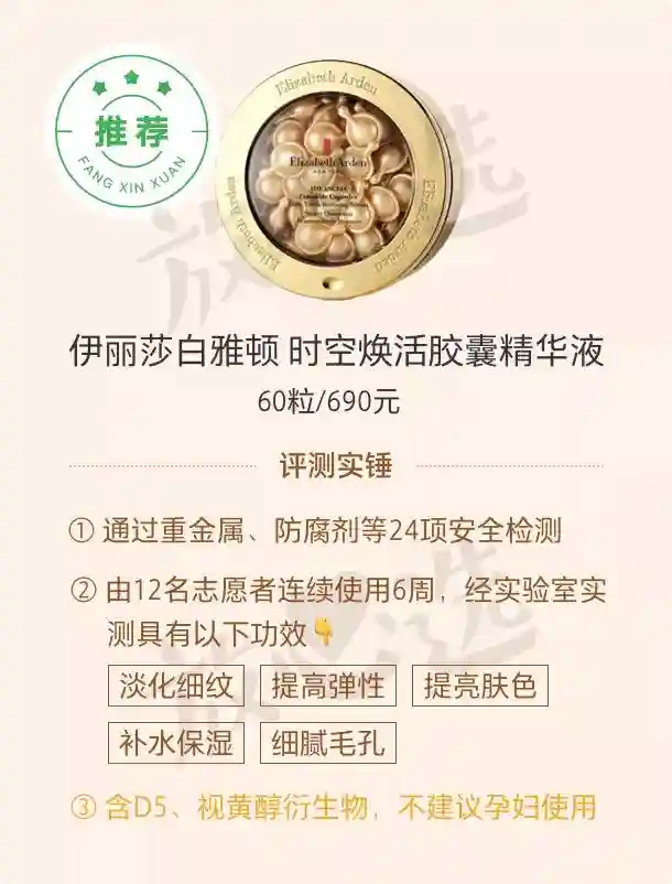升级后的雅顿金胶是李漂亮评测过的抗衰精华里最全能的,相当优秀,但可惜吸收速度大不如前,所以肤感格外油,大家根据喜好决定吧。PS:不建议孕妇使用。