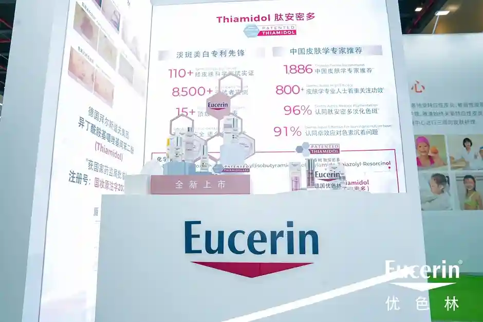 本次参会,优色林带来多项令人瞩目的产品和技术革新。其中最引人注目的是核心淡斑专利成分——Thiamidol肽安密多,这也是该成分首次在中国医学会议上亮相。Thiamidol肽安密多是优色林研发实验室潜心专研10年,从50,000个分子式中严选而来,优色林科学家将这一成分应用到淡斑美白系列产品中,经全球超过8500名受试者进行超过110次临床测试,其卓效实验成果已发布超过15篇顶级期刊文献,成为目前公认的适用于各种肤质且安全有效的淡斑美白成分。
