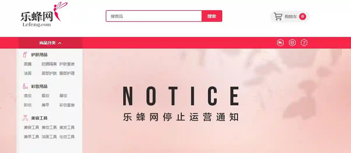 8月28日,“美妆唯品会”乐蜂网通过微信公众号宣布,由于公司业务调整,乐蜂网(包括PC端及APP端)均将于2019年9月18日正式停止运营,官方公众号则从即日起停止发布更新信息,并申请后台注销账号。