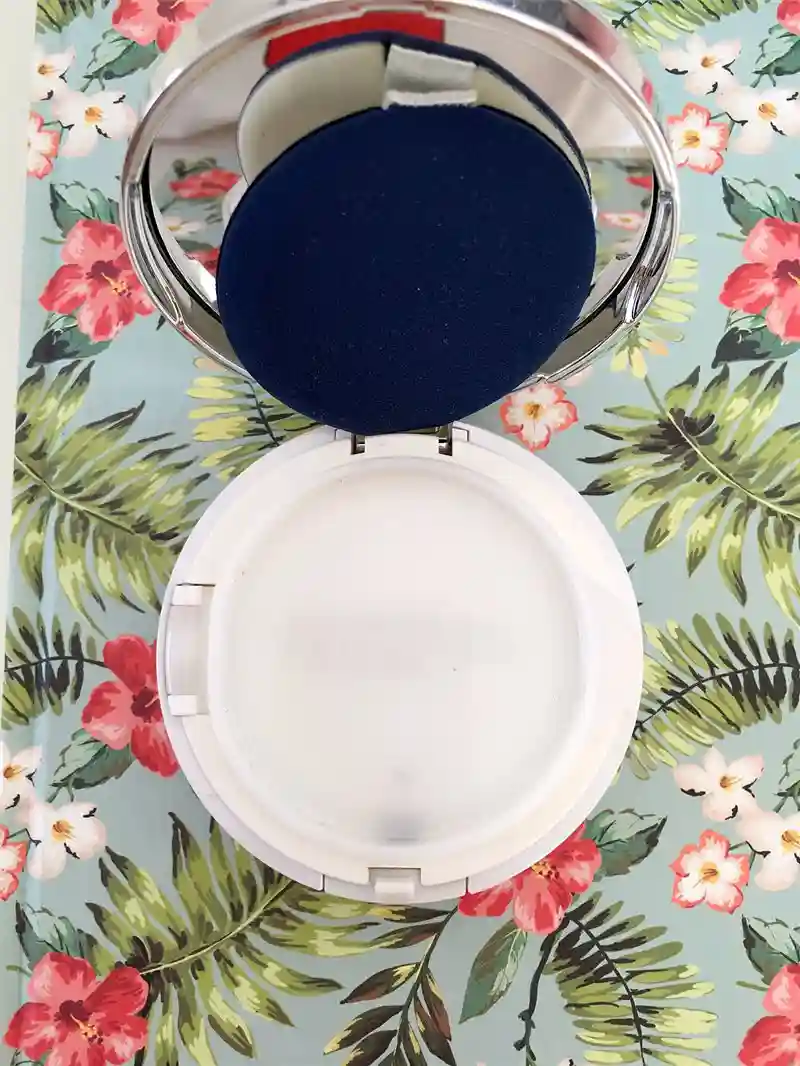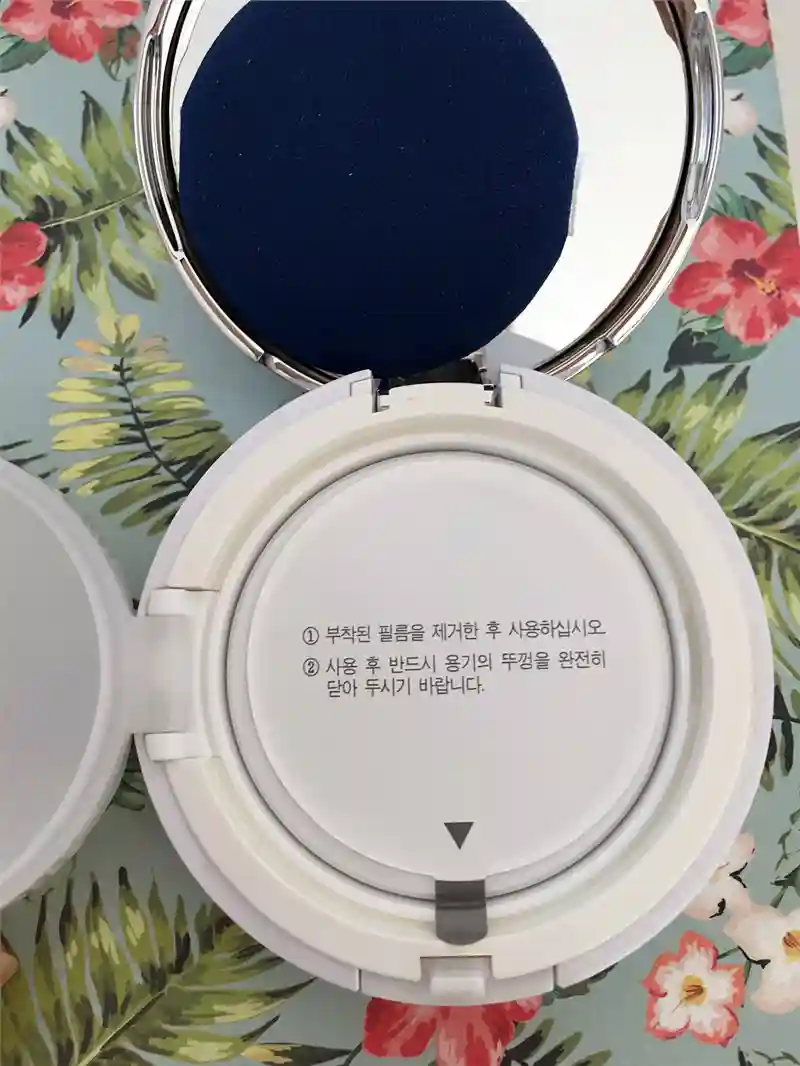 盒内打开以后还镶嵌着一个小镜子,即使在外面没有镜子的地方补妆也不用担心,用起来非常的小巧方便。上层用来放置气垫粉扑,打开夹层,最下面是气垫霜。只要撕掉保护膜就能使用啦。