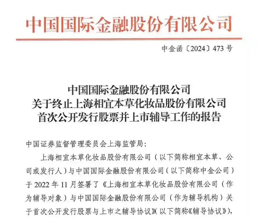 2022年11月,相宜本草与中金公司签署了上市辅导协议,拟于A股上市,随后,中金公司向上海证监局提交了辅导备案申请。此后,相宜本草一直囿于上市辅导阶段,没有实质性的进展。再次传来消息,便是今年10月,相宜本草与中金公司签署了《上海相宜本草化妆品股份有限公司与中国国际金融股份有限公司辅导协议之终止协议》,再次终止IPO之路。