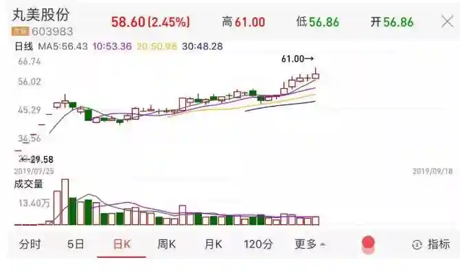 市场对丸美股份也相当看好,上市后几个交易日丸美股份股价开始暴涨,市值超过珀莱雅。