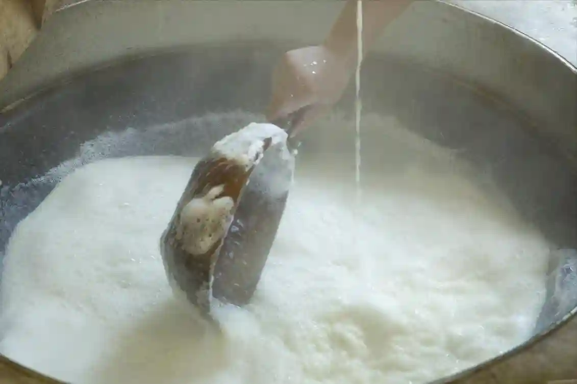 奶奶打豆腐的时候,我也经常参与其中,从打浆到烧浆,再到点浆,这每一步都很有考究,其中点酱是最难的,最早的时候,家里用的都是哪种大石膏,需要自己去慢慢磨,后来有了石膏粉,就用这个替代,倒是省事多了,但是这个量要加多少,如何去搅动浆,这也是相当有技巧,点完浆以后就是过滤,然后压出水分,这便是豆腐了。