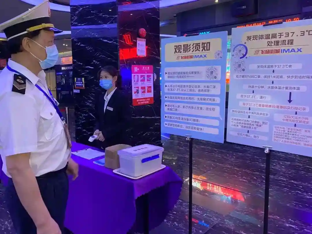 卫监人员现场检查影院防疫措施