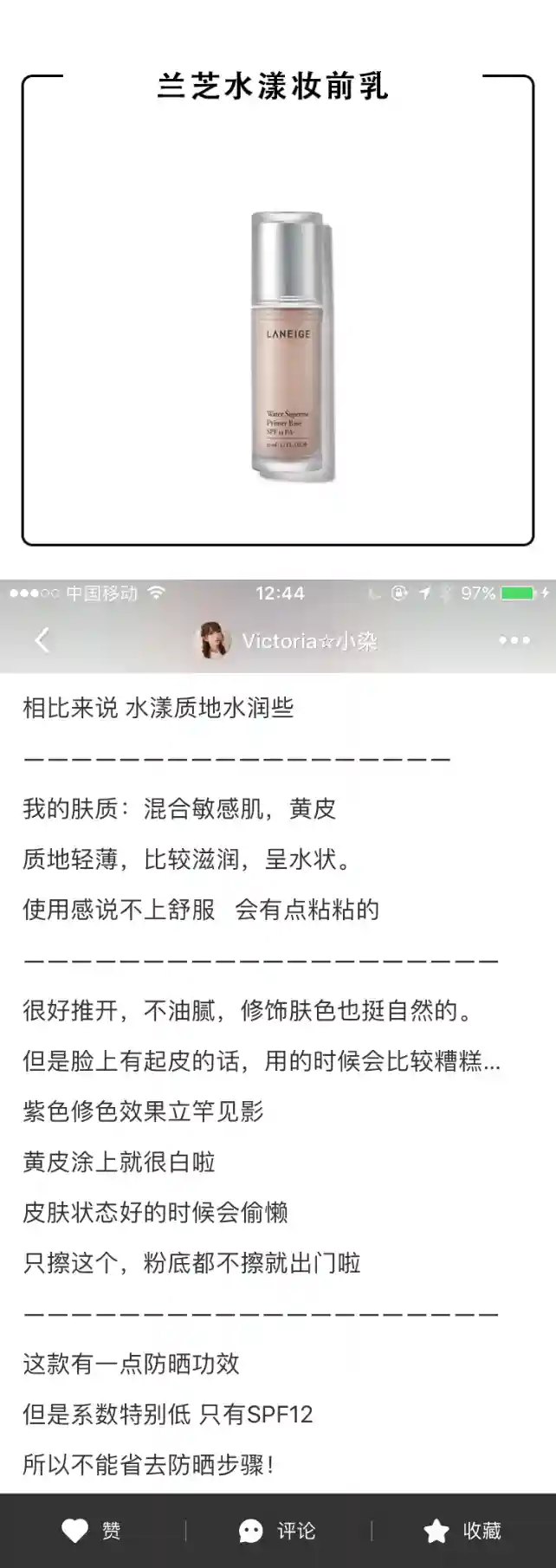 清爽控油不拔干,混油皮用这一款超级舒适。水润保湿款的是乳液质地,上妆更加服帖不卡粉。还带有一定的防晒指数,有润色效果。